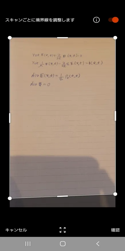 撮影したら,変換する写真の範囲をトリミング機能で選択します.