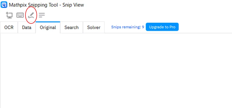 Mathpixをダウンロードしたら,下図左上のアイコンから使用したい読み取り方法に応じて選択していきます.