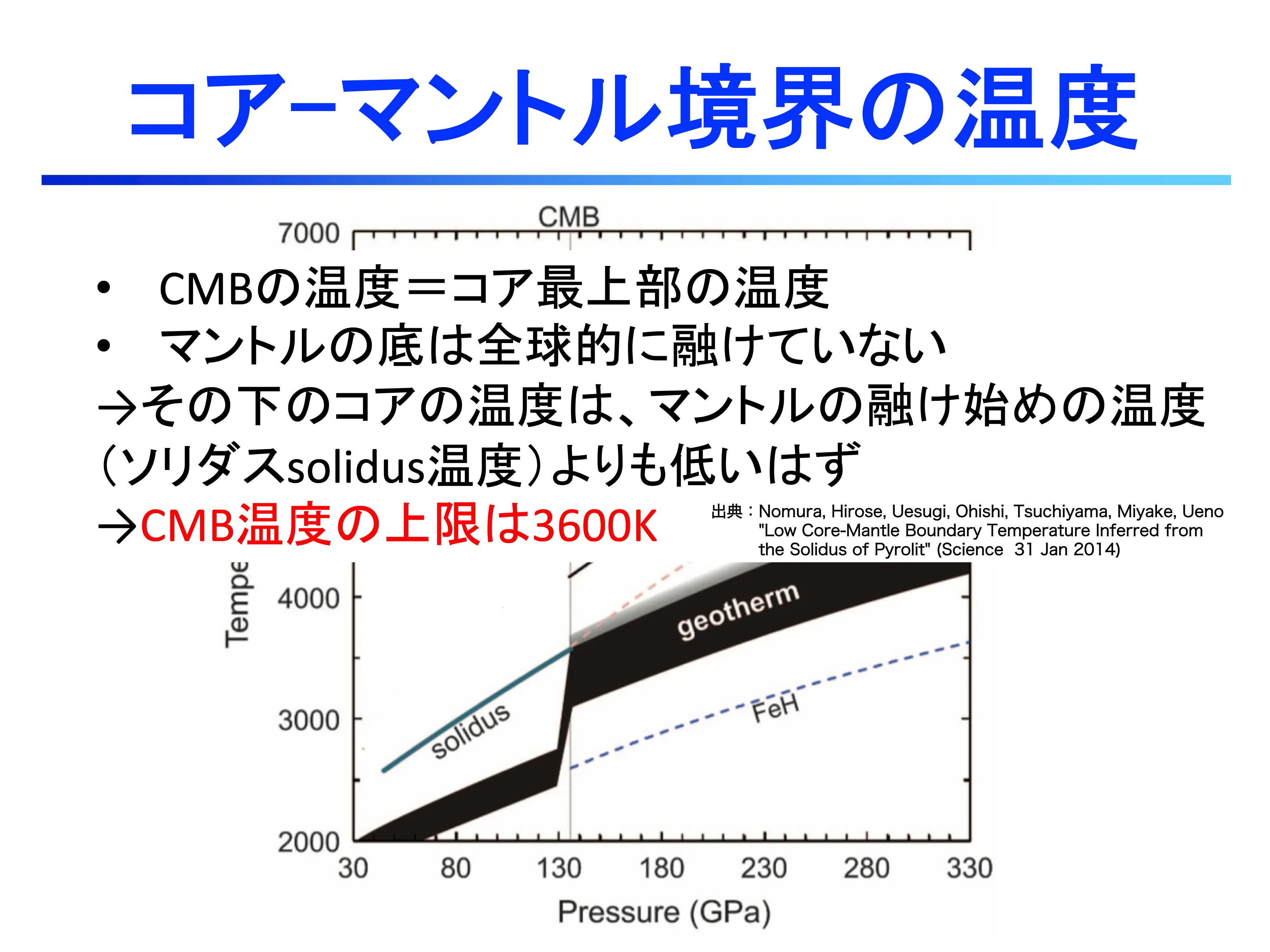 - 地球内部の温度構造:マントルとコアの構造に基づき、地球内部の温度構造を推定する